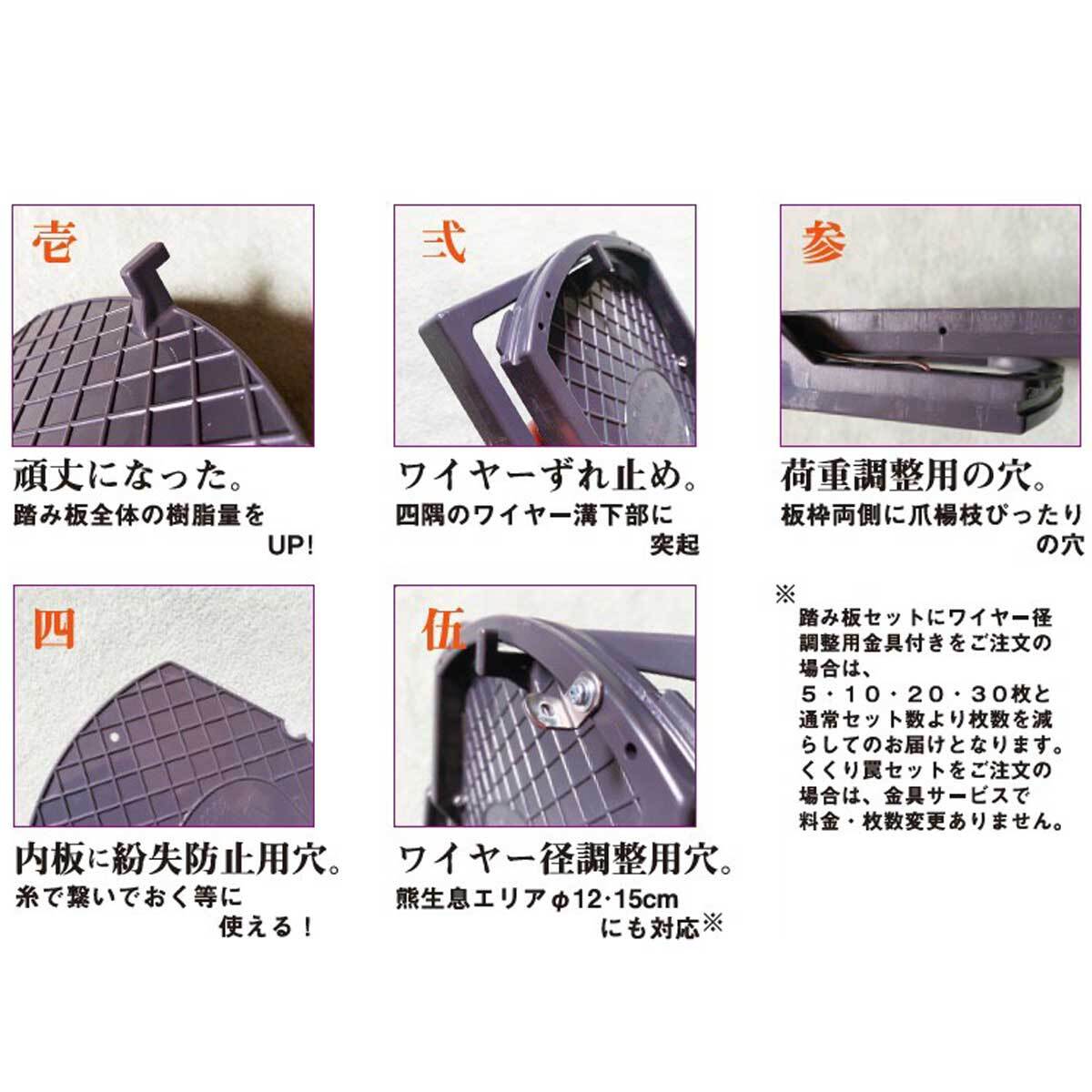 踏板はABS製で軽くて扱いやすいですが、錆びず繰り返し使えます。(大きな獲物がかかるなど、場合によっては壊れてしまうことがありますのでご了承ください。)